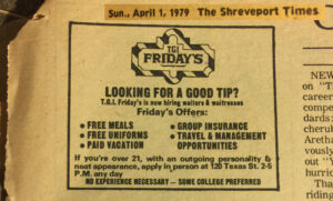 I worked in downtown during the late 70s and early 80s. My favorite place to hang out at lunch and after work was at TGI Friday’s. It was the epicenter of fun back then. Great food (loved the potato skins) and great atmosphere. My wife knew if I was late coming home after work, that she could find me there. And she did a few times! Great memories.