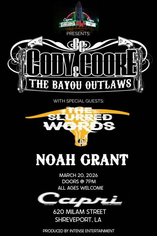 Cody Cooke & the Bayou Outlaws + The Slurred Words + Noah Grant