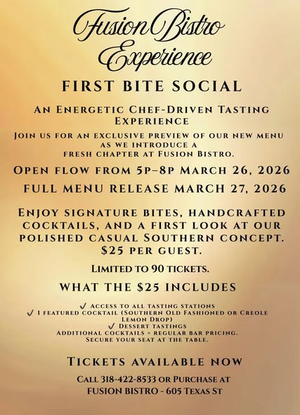 ENJOY A NIGHT OF SIGNATURE BITES, HANDCRAFTED COCKTAILS, AND A PREVIEW OF OUR REFINED CASUAL SOUTHERN CONCEPT. THE EVENT, PRICED AT $25 PER GUEST, INCLUDES ACCESS TO TASTING STATIONS, A FEATURED COCKTAIL, AND DESSERT TASTINGS. ADDITIONAL COCKTAILS WILL BE AVAILABLE AT REGULAR BAR PRICES. SECURE YOUR TICKETS NOW TO RESERVE YOUR PLACE.