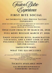 FUSION BISTRO TAKES GREAT PLEASURE IN INVITING YOU TO THE “FIRST BITE SOCIAL”.