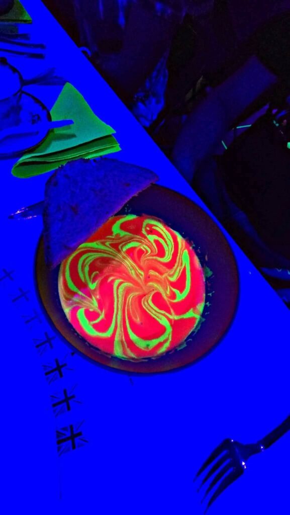 While surrounded by the art, enjoy an unforgettable 5-course meal crafted by The Brit Bakehouse, featuring a special glowing twist woven into the dining experience.