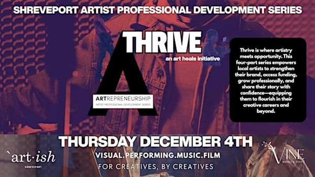 Thrive is a four-part professional development series designed to empower artists, makers, and creatives to strengthen how they show up in public and professional spaces. Whether preparing for festivals, exhibitions, or client opportunities, the program helps participants refine their brand, communication, and presentation skills—building confidence and readiness to thrive as creative professionals.