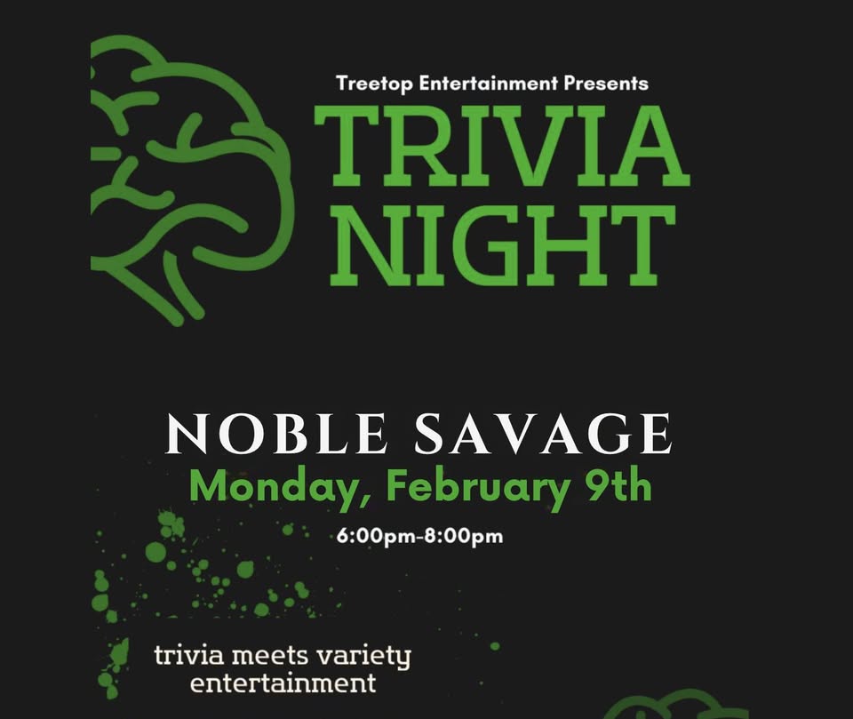 Think you’re the smartest table in the room? Prove it. Join us for Trivia Night hosted by Tree Top Entertainment at The Noble Savage! Grab your crew, order your favorite drinks, and get ready for a night of laughs, friendly competition, and bragging rights.