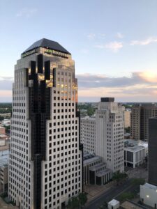 The Henry C. Beck Building at 400 Travis Street is considered a landmark in downtown Shreveport. The stately structure, constructed in 1956 as home to Shreveport’s local oil refining and pipeline industry, gives tenants an outstanding view of downtown and the riverfront. Its towering 20 stories made it the first high rise commercial building in north Louisiana. The building still has its original Chapel located on the second floor. The Chapel, which has been restored to its original beauty, is host to weddings, prayer meetings or just quiet retreats for tenants.